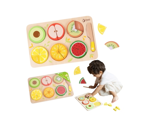 Zestaw owoców do krojenia od marki CLASSIC WORLD to świetne dopełnienie zabawy dla małych kucharzy, którzy uwielbiają bawić się w dom, czy gotowanie. Zestaw zawiera 23 elementy. Zabawa pozwoli na odgrywanie ról już od najmłodszych lat i spełni funkcję edukacyjną m.in. nauka ułamków i dzielenia. Produkt jest rewelacyjnym pomysłem na zabawę! Piękne kolory oraz imitacja owoców zachęci o wspaniałej zabawy. Nasza pociecha pozna kolory oraz nauczy się rozróżniać owoce. Zestaw wykonany z myślą o małych rączkach dziecka. Brak ostrych krawędzi sprawia, ze jest w 100% bezpieczny dla dziecka.