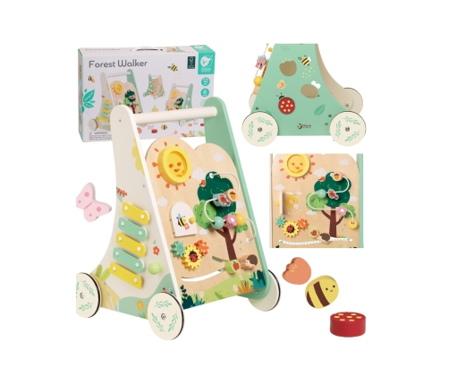 Pozwól odkrywać swojemu dziecku świat pełen magii i nauki, z "Leśnym Chodzikiem" od renomowanej marki Classic World. Drewniany pchacz zaprojektowano tak, aby wspierać pierwsze kroki dziecka, jednocześnie rozwijając jego zmysły i zdolności motoryczne. Z każdym przesunięciem koralika, obrotem zębatki czy uderzeniem w cymbałki - maluch poznaje, jak działa otaczający go świat, a jednocześnie wzmacnia swoje rączki i koordynację. Chodzik będzie towarzyszył Twojemu dziecku w stawianiu pierwszych kroków. Dzięki temu, że zabawka została wykonana z drewna jest stabilna, co daje poczucie bezpieczeństwa. Pchacz posiada gumowe uszczelki na kółkach, które umożliwiają łatwe i ciche prowadzenie. Elementy zostały pomalowane bezpiecznymi dla dziecka farbami w piękne kolory, które zadowolą każdego użytkownika i dadzą mnóstwo radości z zabawy.