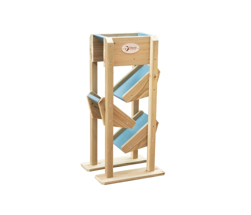 Drewniana Zjeżdżalnia Na Piasek od marki CLASSIC WORLD to drewniana, dobrej jakości zabawka, która idealnie dopełni piaskownicę twojego dziecka, ale także place zabaw w placówkach edukacyjnych. Składa się ona z lejka umieszczonego na samej górze, do którego dziecko wsypuje piasek, który następnie po 3 małych zjeżdżalniach zlatuje na dół. Używanie tej drewnianej zjeżdżalni to świetna zabawa sensoryczna dla dziecka, która dobrze wpływa na małą motorykę.