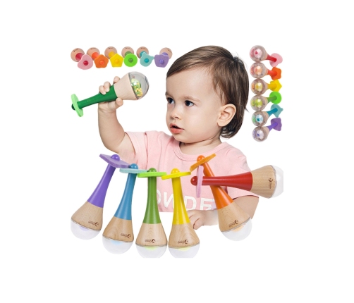 Drewniany Instrument Marakas 2w1 Grzechotka od Classic World to świetny pomysł na prezent dla każdego małego fana muzyki. Dzięki nim dziecko może tworzyć własne rytmy i powoli wchodzić w świat muzyki. Podczas zabawy mogą również zawiesić oko na skaczących koralikach w środku instrumentu. Naucz swoje pociechy rytmu stymulując ich zmysły tymi wspaniałymi marakasami.