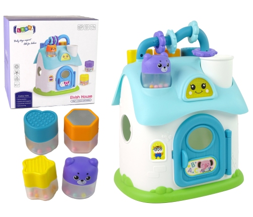 The toy is shaped like a blue and white house. It has a handle that has four different hoops on it, which can be switched from one end to the other. With the handle installed, the toy is easy to move to different places. The educational house also has a white chimney through which you can drop in the blocks included in the set. Each shape thrown in makes a different sound from the toy, also causing the yellow smiley face that appears in the center of the house to light up. The blocks can also be stacked on the roof of the house in their respective places. Throwing the blocks is done not only through the chimney, but also through the holes on the walls of the houses that are suitable for the blocks. The fun begins again when you open the door of the cottage and pull out the blocks. Not only are the blocks of different shapes, but they have balls in them that make a distinctive rustling sound.