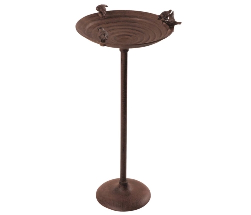 Antīkā dizaina putnu vannai ir četras dekoratīvas putnu figūras, un tā ir novietota uz gluda, aprūsējoša izskata statīva. Bļodas iekšpusei ir rievota virsma, kas nodrošinās putniem labu saķeri. Novietojiet šo burvīgo putnu barotavu pie sava loga vai uz terases un vērojiet putnus, kad tie ēd, dzer vai peldas!