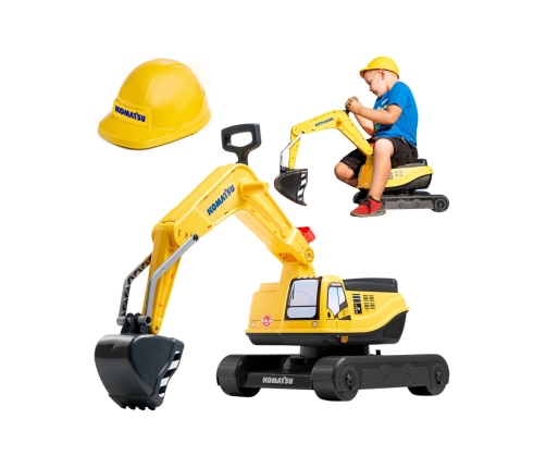 KOPARKA FALK Komatsu to bardzo solidna konstrukcja i wysokiej jakości trwałe materiały. Kabina obraca się o 360° a łyżka koparki jest obrotowa. Zabawka jest bardzo zwrotna, łatwa w obsłudze - doskonale sprawdzi się w ogrodzie czy na plaży. Dodatkowo w zestawie z jeździkiem- koparką żółty kask.