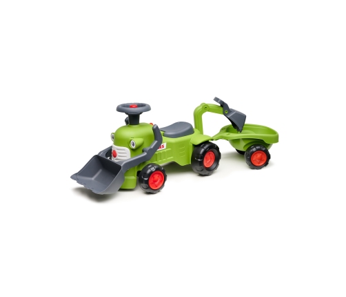 Traktors "Class" ar piekabi no Falk ir sapņu piepildījums ne vienam vienam mazajam traktoru entuziastam. Tas ir izgatavots ar lielu rūpību, ņemot vērā pat vismazākās detaļas. Neviens īsts lauksaimnieks tādu neatteiks. Traktors CLAAS ar lāpstu, iekrāvēju un piekabi ir izgatavots no augstas kvalitātes materiāliem. Pārbraucamais transports ir paredzēts bērniem no 12 mēnešu vecuma. Transportlīdzeklis ir aprīkots ar atvienojamu piekabi un stūri ar skaņas signālu.