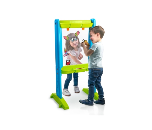 Dwustronna Przeźroczysta Tablica do Rysowania Art&Fun Board od renomowanej marki FEBER to przezroczysta i artystyczna tablica do obustronnego wykorzystania. Wyposażona jest w naklejki, które można dowolnie umieszczać na tablicy, nadając jej indywidualny charakter. Tablica zawiera specjalne łączniki, które pozwalają na umieszczanie dołączonych szablonów lub własnych rysunków. Możesz również korzystać z tablicy bez użycia szablonów.