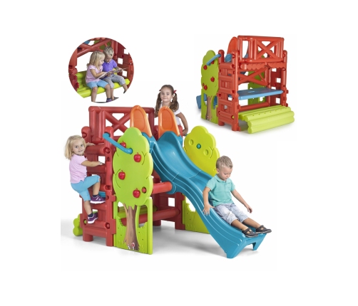Feber Plac Zabaw Ze Zjeżdżalnią i Stolikiem to kolorowy, stabilny, pełen niespodzianek plac zabaw umożliwi maluchom doznawanie sportowych emocji. Zapewni niezbędną porcję ruchu i rozwinie sprawność fizyczną przy jednoczesnym zachowaniu zasad bezpieczeństwa. Wyprodukowany na podstawie najnowszych technologii oraz najwyższych norm bezpieczeństwa. Frajda z zabawy gwarantowana!