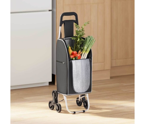 Šis salokāmais iepirkumu ratiņš padara mantu pārvietošanu par vienkāršu procesu. Ar izturīgu metāla rāmi un plašu izolētu somu tas ir ideāls tirgus ceļojumiem vai pārtikas iepirkumiem, dodot spēku un vieglumu katru reizi.