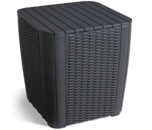 Šis Luzon dārza galds ir izgatavots no plastmasas PP (polipropilēna) materiāla ar modernu, noapaļotu rotangpalmas pinuma rakstu, tas ir izturīgs pret dažādiem laikapstākļiem un ļoti viegli kopjams. Tam ir moderni Rezolith elementi, kas izskatās gandrīz kā īsts koks. Šis materiāls neizbalos, nerūsēs, nepelēs, nelobīsies, tāpēc tas ir īpaši piemērots regulārai lietošanai ārā. Galdā ir ērts nodalījums, kurā jūs varēsiet glabāt dažādas mantas, lai tās vienmēr būtu ērti sasniedzamas.