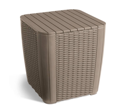 Šis Luzon dārza galds ir izgatavots no plastmasas PP (polipropilēna) materiāla ar modernu noapaļota rotangpalmas pinuma rakstu. Tas ir izturīgs pret dažādiem laikapstākļiem un ļoti viegli kopjams. Galdiņam ir moderni Rezolith elementi, kas izskatās gandrīz kā īsts koks. Šis materiāls neizbalos, nerūsēs, nepelēs, nelobīsies, tāpēc tas ir īpaši piemērots regulārai lietošanai ārā. Galdā ir ērts nodalījums, kurā jūs varēsiet glabāt dažādas mantas, lai tās vienmēr būtu ērti sasniedzamas.