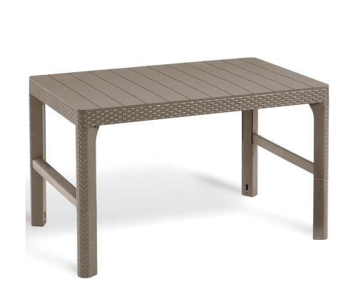 Vienkāršā un vienlaikus stilīgā dizaina dārza galds ir izgatavots no materiāla, kam nav nepieciešama īpaša kopšana un kas ir noturīgs dažādos laikapstākļos. Tam ir plata pinuma tekstūra un Rezolith galda virsma ar elegantu mākslīgā koka tekstūru. Tā materiāls nemaina krāsu, nerūsē, nepūst un nelobās, tādēļ šis dārza galds ir lieliski piemērots ikdienas lietošanai ārā. Sūtījumā ir iekļauti divi galda kāju komplekti, kas ļaus to izmantot kā 40 cm augstu kafijas galdiņu vai 66 cm augstu pusdienu galdu.