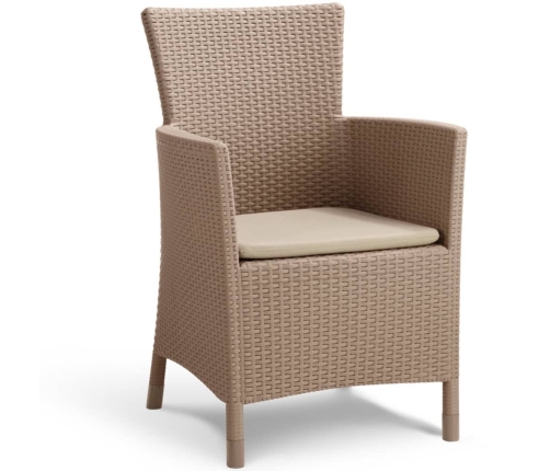 Krēslam ir ērti roku balsti un ergonomiski veidota atzveltne lieliskam komfortam. Pieskaņotais matracis ir iekļauts komplektā. Šis ērtais dārza krēsls ir izgatavots no izturīgas, pret laikapstākļiem noturīgas plastmasas, kam nav nepieciešama īpaša kopšana. Mūsdienīgā dizaina dārza krēsls iederēsies jebkurā dārza mēbeļu komplektā un piestāvēs jebkuram dārza galdam.