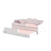 Stilīga bērnu gulta-mašīna ir augstas kvalitātes, izturības un unikāla dizaina kombinācija. Tā ir izgatavota no augstvērtīgas KSP plātnes, konstrukcijā tiek izmantota elastīga stelāža Flex. Tā iztur līdz 110 kg lielu slodzi un ievērojami palielina miega komfortu. Gultas neatkārtojamais dizains padarīs to ne tikai kā vietu, kur gulēt un atpūsties, bet arī kā svarīgu interjera elementu. Krāsu kombinācija atsvaidzinās bērnu istabas interjeru un ļaus izbaudīt patīkamus un neaizmirstamus mirkļus.