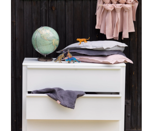 Tādā pašā dizainā atsevišķi var iegādāties gultiņu un skapi.