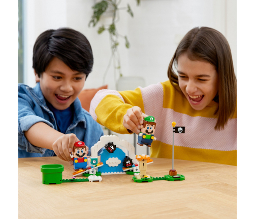 Dzieci w wieku od sześciu lat mogą wzbogacić swoje poziomy LEGO® Super Mario™ o podniebne wyzwanie dzięki zestawowi Salta Fuzzy’ego — zestaw rozszerzający (71405). W komplecie jest model nieba i chmury do zbudowania, platformy dla dwóch figurek LEGO Fuzzych, a także grzybowa trampolina i blok czasu. Pomóż LEGO® Mario™, LEGO® Luigiemu™ lub LEGO® Peach™ (figurki nie są częścią zestawu) wybić się z grzybowej trampoliny i nadepnąć na oba końce platform, aby strącić Fuzzych i zdobyć cyfrowe monety. (Uwaga: do interaktywnej zabawy wymagany jest zestaw startowy 71360, 71387 lub 71403).