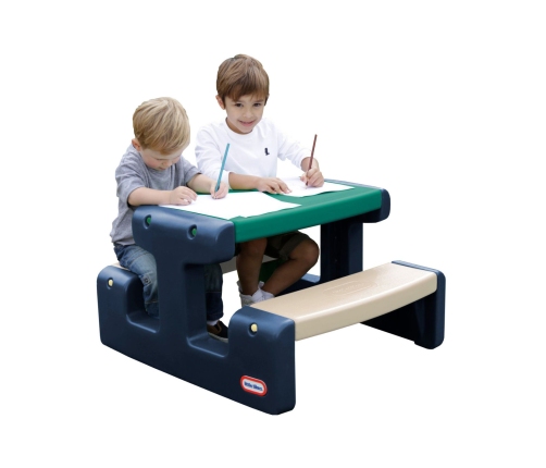 Stolik Piknikowy Niebiesko-Zielony zaprojektowany przez cenionego producenta zabawek Little Tikes jest idealny do zabawy zarówno w domu jak i w ogrodzie. Jednoczęściowy stół, wyposażony w wygodne czerwone siedziska oraz zaokrąglone i gładkie krawędzie dla zapewnienia bezpieczeństwa. Odpowiedni do wykonywania wszelkich zadań, np. lepienia, malowania, wycinania oraz jedzenia. Przy stole może jednocześnie przebywać czworo dzieci. Łatwy w utrzymaniu czystości.