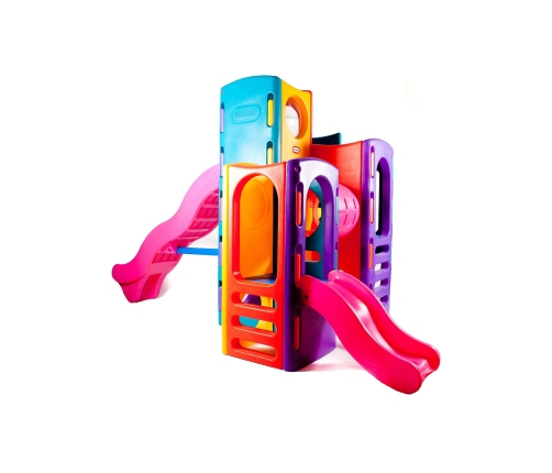 Wielki Plac Zabaw ze Zjeżdżalniami od amerykańskiej firmy Little Tikes sprawi, że obok niego obojętnie nie przejdzie żadne dziecko. Posiada wszystko czego potrzeba dzieciom do szczęścia. Zabawa może odbywać się na czterech różnych poziomach oraz na dużej powierzchni pod konstrukcją. Najwyższy poziom wyposażony jest w duże okno, przez które można podglądać inne bawiące się dzieci. Pomiędzy platformami znajduje się tunel-przejście. Dzieci będą mogły wraz z rówieśnikami bawiąc się w chowanego, wspinać się, przechodzić przez tunele i ślizgać się na zjeżdżalniach o wymiarach 90 i 180 cm. Rewelacyjna jakość wykonania. Te place zabaw wykonano z odpornego na warunki atmosferyczne tworzywa.