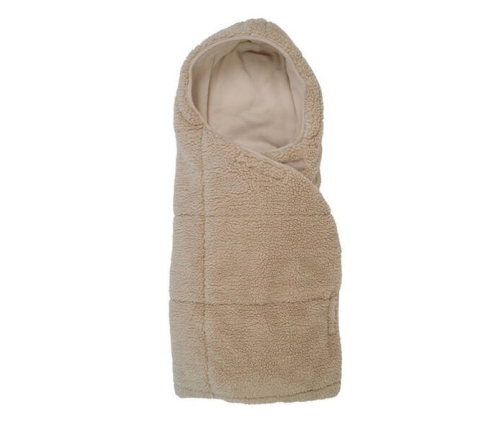Dla dodatkowego komfortu i ochrony wyposażony jest w kaptur, którego szerokość można regulować zaciskowym sznurkiem. Warstwa zewnętrzna wykonana jest z grubszego polaru typu teddy (dziane, puchate futerko), Warstwa wewnętrzna zaś – z cieńszego, gładkiego i miłego w dotyku. Otulacz nadaje się do użytku dla dzieci od urodzenia do ok. 9. miesiąca życia.