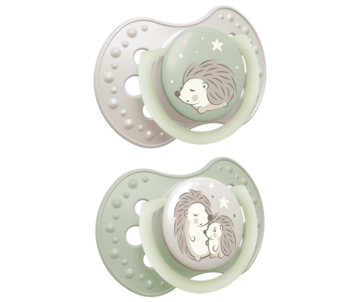 Tarczka smoczka wykonana jest z plastiku wolnego od BPA i ma profilowany kształt, który umożliwia dziecku swobodne oddychanie przez nos.