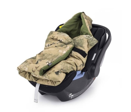 Otulacz do fotelika wyposażony jest w otwory na trzy i pięciopunktowe pasy bezpieczeństwa. Długie pionowe otwory zabezpieczone rzepem pomogą dopasować kocyk do każdego fotelika. Zapinany jest na szeroki rzep z dużym obszarem regulacji, a w górnej części posiada zapinany kapturek, który otula i chroni główkę.
