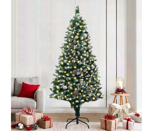 Šis mākslīgais Ziemassvētku koks ir labākais dekors svētku laikā, lai uzlabotu tavu viesistabu. Ar sulīgiem zaļiem zariem un foršu formu, tas izskatās dabiski un pievilcīgi, papildināts ar sniega un priedes čiekuriem. Neatkarīgi no tā, vai plāno ģimenes sanāksmi vai vienkārši vajag foršu fona siltām naktīm, šis koks radīs patīkamu svētku atmosfēru, kur vien tas stāv.