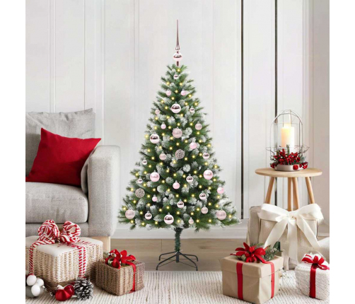 - Materiāli: Uztaisīts no augstas kvalitātes PVC, šis mākslīgais Ziemassvētku koks izskatās dabiski un bagātīgi. PVC ir izturīgs materiāls, kas nodrošina, ka jūsu koks paliek krāsains visas svētku sezonas garumā. Materiāls droši tur jūsu iecienītākos rotājumus un gaismas, nezaudējot formu.