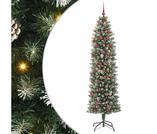 Mūsu mākslīgais tievais Ziemassvētku koks piedāvā modernu stilu ar dzīvotspējīgu izskatu, kas ir lielisks papildinājums jūsu svētku dekorācijām. Tā tievā konusveida forma viegli iederas jebkurā dzīvojamās istabas vidē, kas padara to par ideālu risinājumu mazām telpām. Ar PVC un metāla struktūru šis koks lieliski imitē tradicionālo priežu dabisko skaistumu un ir pietiekami izturīgs, lai izturētu visus svētkus. Izbaudiet siltu LED gaismu, kas piešķir mājīgu atmosfēru ģimenes sanāksmēm, svinībām un pēcpusdienām mājās.