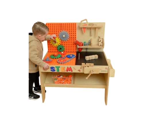 Drewniany warsztat STEM od marki Masterkidz to idealne miejsce do eksperymentowania, która rozwija kreatywność i umiejętności techniczne dziecka. Wykonany z wysokiej jakości drewna, łączy zabawę z nauką, umożliwiając dzieciom odkrywanie zasad mechaniki, inżynierii i fizyki. Realistycznie wyglądający warsztat będzie super atrakcją w każdej klasie lub pokoju zabaw, zachęcając dzieci do tworzenia działających systemów i budowania z wykorzystaniem realistycznych narzędzi.