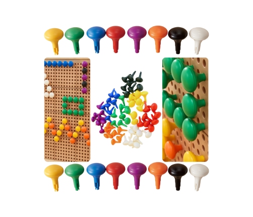 Dzięki kolorowym kołeczkom Masterkidz, stworzysz na swojej tablicy niezapomniane konstrukcje lub obrazki. Jedynym ograniczeniem jest Twoja wyobraźnia, więc puść jej wodze i stwórz coś pięknego! Kołeczki występują w 8 kolorach, więc pozwalają na tworzenie przeróżnych kompozycji.
