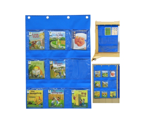 Materiałowy arkusz firmy Masterkidz, zawierający 3 rzędy kieszonek na książki, lub obrazki. Świetnie sprawdza się w warunkach szkolnych, gdzie można go wykorzystać do objaśniania trudnych zagadnień. Nada się również jako ciekawy mebel, który będzie eksponował wartościowy tytuły - na przykład w bibliotece.