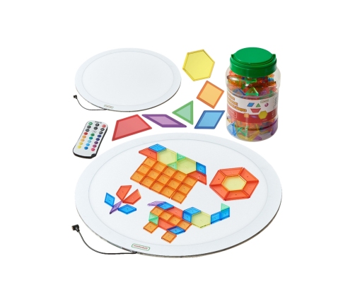 Okrągły panel świetlny to wszechstronne narzędzie edukacyjne, które doskonale sprawdzi się w każdej sali lekcyjnej. Dzięki lekkiej konstrukcji i dużej średnicy umożliwia wygodne przenoszenie oraz zapewnia odpowiednią przestrzeń do obserwacji i zabawy dla dzieci w różnym wieku. Panel emituje kolorowe światło z możliwością dowolnej konfiguracji dzięki dołączonemu pilotowi, użytkownik może ustawić panel na jeden z 11 zaprogramowanych kolorów, lub ręcznie zmienić emitowany kolor bazując na podstawowych barwach światła: czerwonej, zielonej i niebieskiej. Urządzenie pozwala także na płynne przechodzenie pomiędzy kolorami oraz zapamiętywanie wybranych barw do ponownego użycia Panel można umieścić zarówno na stole, jak i na podłodze – jego rozmiar pozwala na jednoczesną pracę jednego dziecka lub grupy. Panel doskonale współpracuje z dołączonymi do zestawu przezroczystymi kolorowymi figurami geometrycznym, które wspierają rozwój kreatywności oraz wyobraźni podczas zabawy.