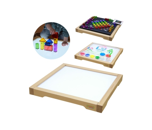 MASTERKIDZ Panel Skrzynia LED Sensoryczna. Solidna drewniana skrzynka LED z białym światłem renomowanej firmy Masterkidz. Umożliwia różne rodzaje działań wspierających rozwój kreatywności np. mieszanie kolorów oraz inne metody nauki systemem STEM. Piękne efekty można uzyskać, gdy światło przebija różne materiały, takie jak liście, papier, taca z piaskiem itp. Działa idealnie razem z kwadratową tacą z piaskiem Masterkidz lub tacą z przezroczystą wodą Masterkidz.