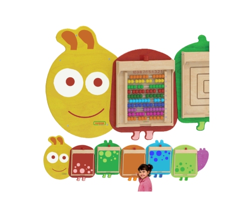 Masz już dosyć tych samych tablic ściennych dla dzieci, wiszących latami? Nie wiesz co zrobić, gdy jedna z tablic się uszkodzi, a pod nią znajduje się zniszczona ściana? Mamy idealne rozwiązanie: system do montażu tablic ściennych Masterkidz Flex w formie pięknej i kolorowej Gąsienicy. Nie wymaga żadnych narzędzi by wymienić tablicę, a sam montaż i demontaż poszczególnych zabawek jest niewiarygodnie prosty i szybki. Wyjęcie jednej i włożenie drugiej trwa mniej niż minutę. Nauczyciel może między zajęciami dowolnie wymieniać pomoce, wybierając tablice z konkretnej kategorii: sensorycznej, zręcznościowej, matematycznej itp.