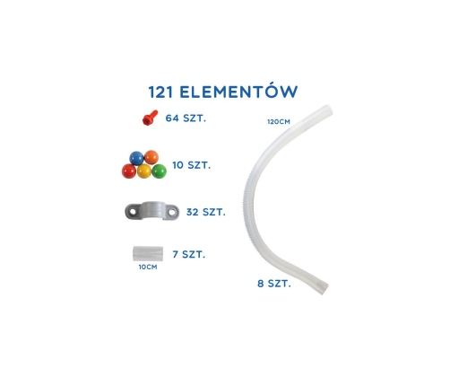 Do zestawu można dokupić pompę wodną, która sprawi, że zabawa stanie się jeszcze ciekawsza. Rurami można przepuszczać wodę, wlewając ją do lejków za pomocą dołączonych do zestawu dzbanków, ale można również zobaczyć jak spadają drewniane piłeczki, wrzucając do środka. Można zbudować jeden ogromny system rur, lub kilka mniejszych, by bawić mogło się kilkoro dzieci jednocześnie. Niesamowita zabawka marki Masterkidz, która służy do skonstruowania hydraulicznego systemu.