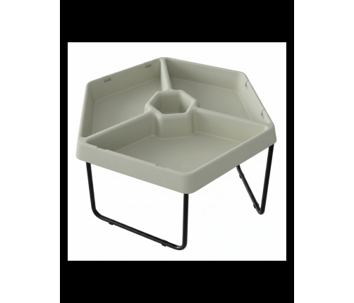 - - Sześciokątna taca podzielona na 3 oddzielne komory – idealna do prowadzenia trzech aktywności w tym samym czasie lub pracy z trzema różnymi substancjami.