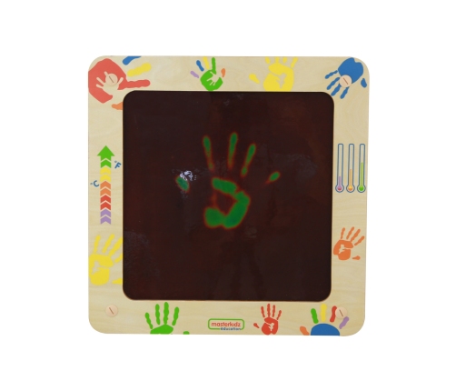 To niezwykła zabawka, która zachwyca dzieci swoimi kolorami. Kiedy dzieci przykładają do niej ciepłe dłonie lub palce, na jej powierzchni pojawiają się kolorowe odciski, które znikają po kilkunastu sekundach. To ciekawy sposób na naukę o temperaturze i ciele ludzkim. Dzieci mogą sprawdzać, czy ich dłonie są cieplejsze czy zimniejsze od innych, oraz rysować na tablicy smugi i wzory. Tablica zmienia kolory pod wpływem ciepła, co pobudza zmysł wzroku i ciekawość dzieci.