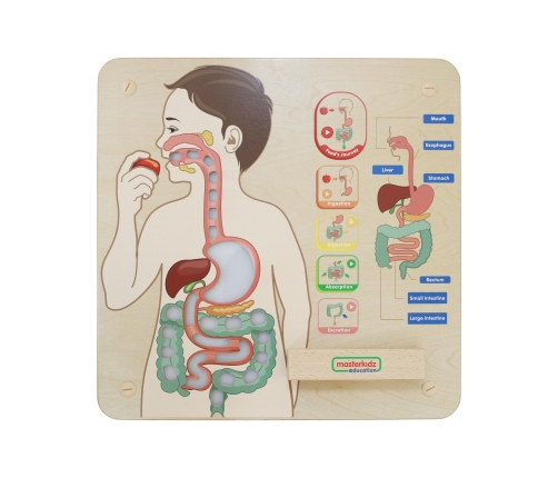 - - tablica uczy dzieci jak główne narządy odgrywają ważną rolę w procesie trawienia