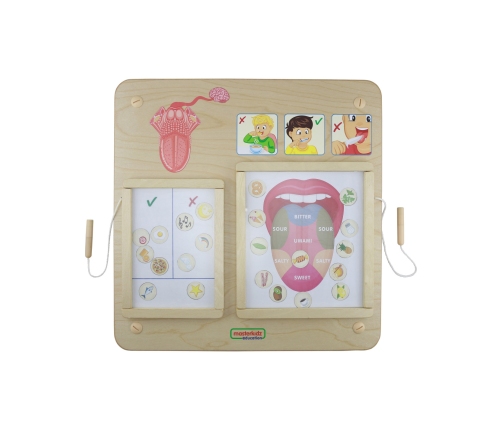 - - tablica pokazuje dzieciom w jaki sposób nasz organizm rozpoznaje smaki