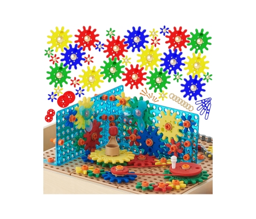 Zestaw kolorowych trybików i kół zębatych, które pozwalają na skonstruowanie skomplikowanych mechanizmów. Zabawkę montuje się na Tablicy Naukowo-Kreatywnej Masterkidz STEM przy pomocy specjalnych śrub Masterkidz. Zabawa kołami zębatymi poprawia motorykę dziecka, zdolność logicznego myślenia, a także kreatywność.