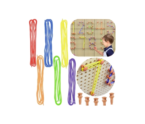 Zestaw 200 kołków i 60 kolorowych sznureczków, które pozwalają na kreatywną zabawę. To świetny element, dzięki któremu Twoje dziecko nie tylko w piękny sposób ozdobi swoją tablicę i stworzy niesamowite rysunki, ale również poprawi zręczność. Zabawa poprawia motorykę dziecka, zdolność logicznego myślenia, a także odkrywczość.