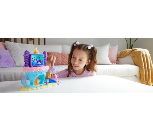 Zestaw do zabawy Lunapark Zatoka syren ma uroczy motyw podmorski, a kolorowa wieża obraca się i wypuszcza 15 niespodzianek (załaduj akcesoria do wieży, aby bawić się wciąż od nowa).