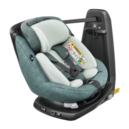 - Griežas 360°, ļaujot Jums pagriezt sēdekli vēlamajā leņķī, lai būtu ērtāk piesprādzēt bērnu