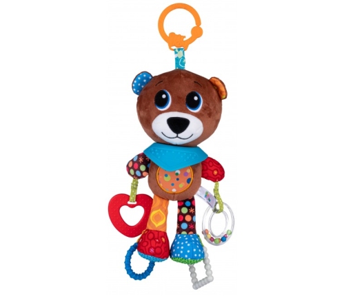 - Lācītis ir aprīkots ar vairākiem zobgraužņiem ar ieliktņiem un grabuli, kas pildīts ar krāsainām bumbiņām