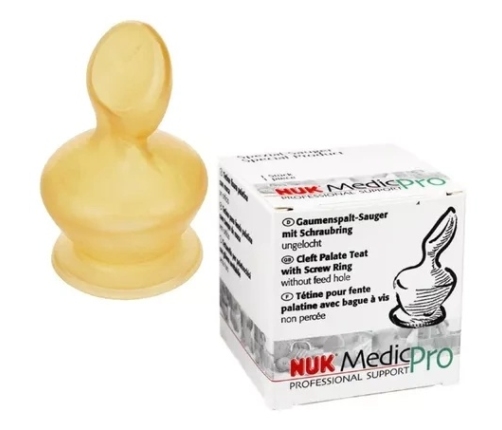 Smoczek NUK (bez otworu przepływowego) dla dzieci z rozszczepieniem podniebienia.