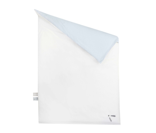 Delikatne, bezpieczne dla skóry niemowlęcia powłoczki z gładkiej bawełny satynowej wypełniliśmy hipoalergicznym włóknem poliestrowym, uzyskując lekką kołderkę (80 x 100 cm) i jeszcze lżejszą płaską poduszeczkę (40 x 60 cm).