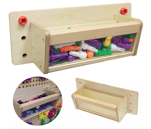 - - Pojemniczek jest montowany za pomocą śrubek Masterkidz bezpośrednio do ścianki STEM, dzięki czemu nawet dziecko poradzi sobie z montażem w dowolnym miejscu na tablicy.