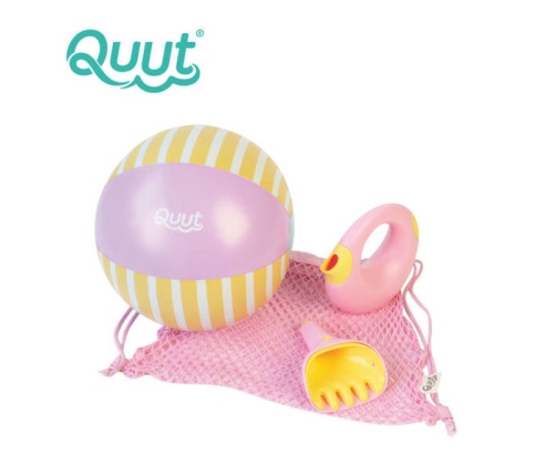 Zestaw ogrodowy marki Quut składa się z: małej konewki Cana, zestawu łopatka + grabki Raki oraz piłki plażowej Ø 30 cm. Przyciąga wzrok niebanalnym designem i oryginalną kolorystyką. Wszystkie zabawki są poręczne, lekkie i łatwe do utrzymania przez dziecko. Konewka ma pojemność 0,5 litra, zaokrąglony kształt, gumowe wykończenie z dziubkiem po jednej stronie i drobne sitko do robienia prysznica po drugiej. To sprytne rozwiązanie np. do przenoszenia wody czy podlewania roślin. Jest stabilna i wygodna w użytkowaniu.