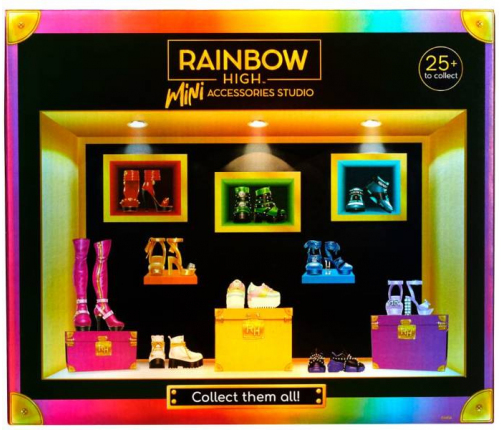 Pokaż się w świetnym stylu dzięki nowej kolekcji luksusowych butów Rainbow High™. Możesz stworzyć swój ulubiony strój dnia, wykorzystując dodatkowy blask, który zapewnią te najmodniejsze w tym sezonie buty. Każda wspaniała para butów jest spakowana w kultowym kuferku Rainbow High. Zadbano o wszystkie szczegóły — w tym kuferek na buty, pojedyncze pudełka, bibułę, a nawet paragon! Masz do wyboru 27 par butów — dzięki nim stworzysz niesamowite stylizacje dla wszystkich swoich lalek Rainbow High. Pudełka są zamknięte — w każdym czeka niespodzianka! Nie możemy się doczekać, aż zbierzesz je wszystkie!