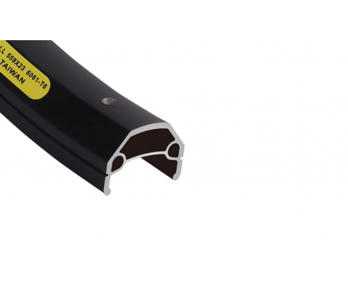 622 × 23, 14G x 32H, V-Brake, alumīnijs, divkārša, melna, ERD 599 mm, nekrāsota bremžu virsma