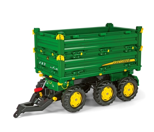 Przyczepa wywrotka Rolly Toys zielona trzyosiowa - przyczepa Mega Trailer John Deere posiada możliwość wyładunku wywrotki na 3 strony. Jest stabilna, ponieważ posiada 3 osie kół. Pasuje do każdego pojazdu Rolly Toys wyposażonego w uchwyt do holowania przyczepy. Zabawki Rolly Toys to najwyższej jakości oryginalny, niemiecki produkt, który posłuży Twoim dzieciom przez wiele lat.