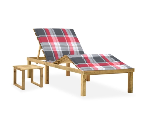 Šis koka sauļošanās krēsls ar matraci un galdiņu ir stilīgs un praktisks. Tas jūsu āra teritorijai piešķirs dabīgu šarmu.